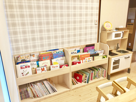 玄関先のアンパンマンの表示が目印です。又、大人向け育児雑誌も用意しております。
